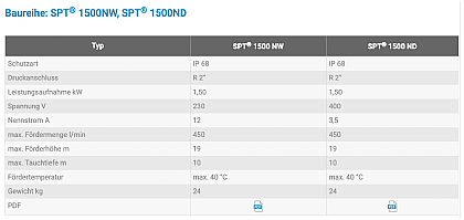 SPT SCHMUTZWASSERPUMPEN SPT® 1500 NW - SPT® 1500 ND