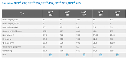SPT SCHMUTZWASSERPUMPEN SPT® 215 bis SPT® 8220